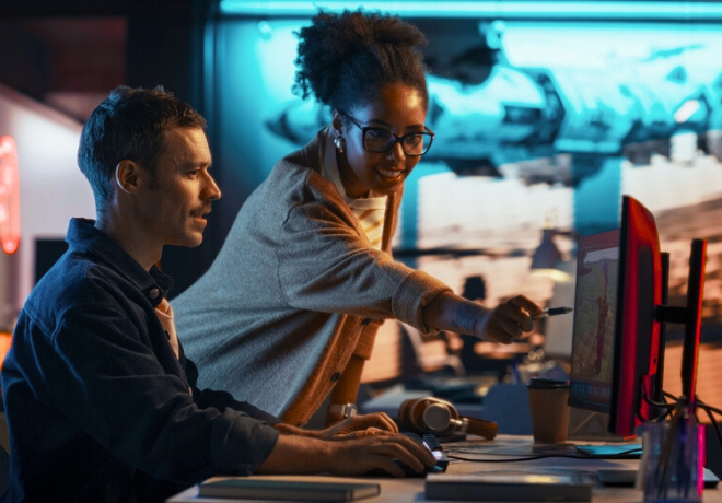 Com o plano aprovado, a nossa equipa de especialistas entra em ação. É a fase da construção, onde o design se transforma em código, as ideias em conteúdo e a estratégia em campanhas ativas. Cuidamos de cada detalhe para garantir uma entrega impecável e dentro do prazo.